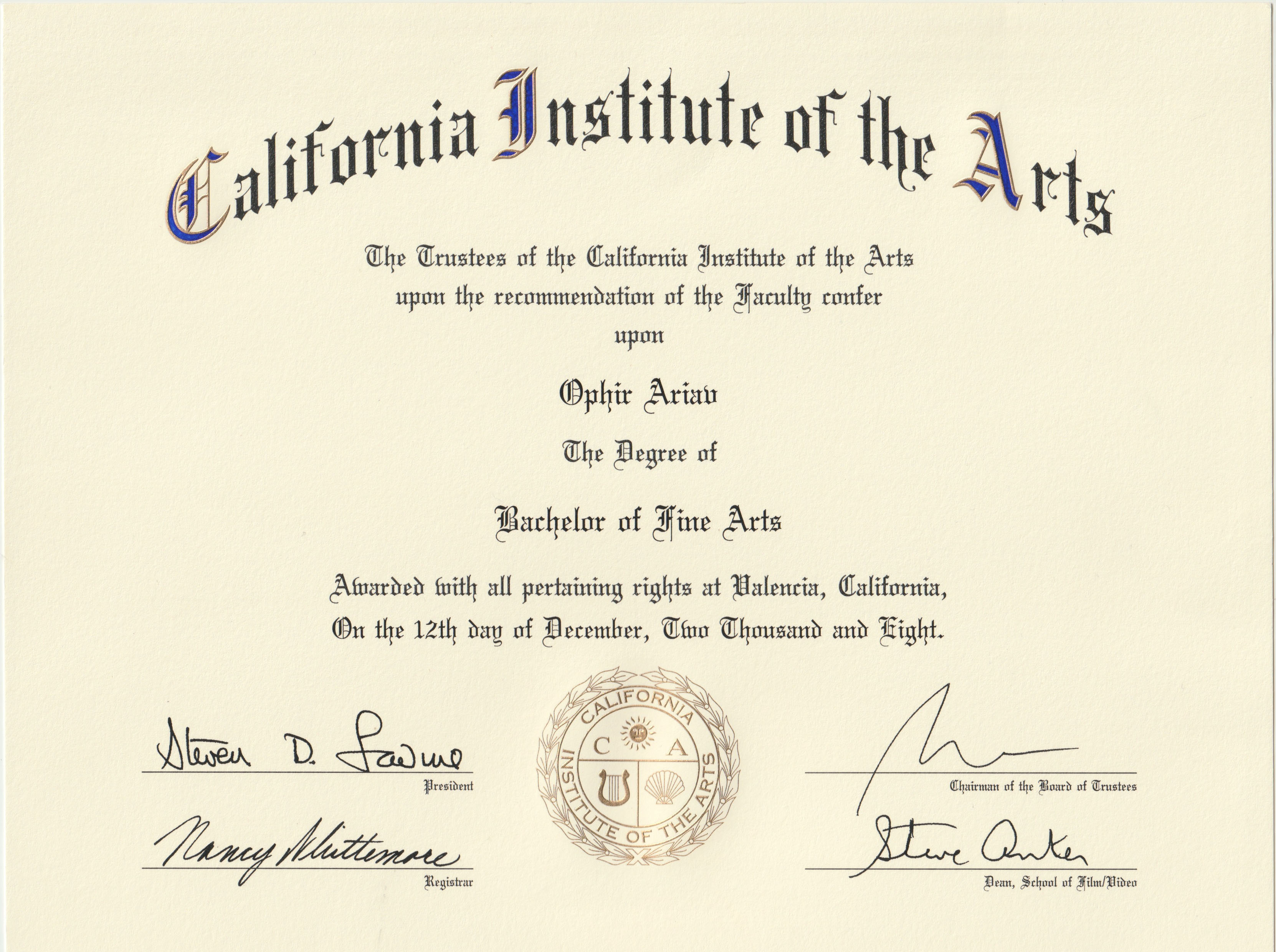 Bachelor of fine arts- California Institute of the arts (CalArts), USA